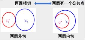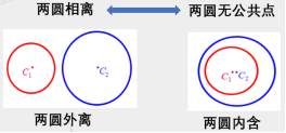 时,无法判断两圆外离还是内含,只能用来判断交点个数,因此遇到判断位置关系的问题还需要其他计算支撑;优点是可以求出公共点.